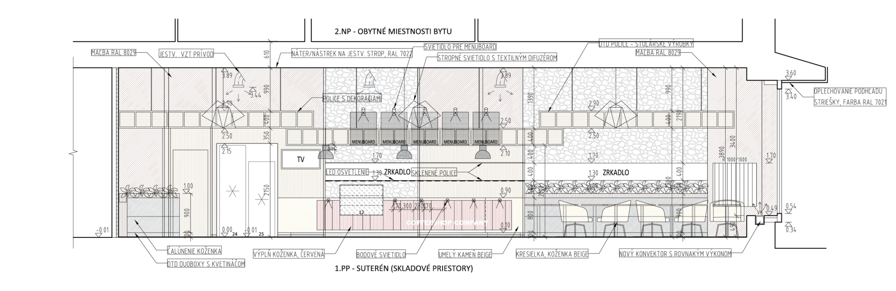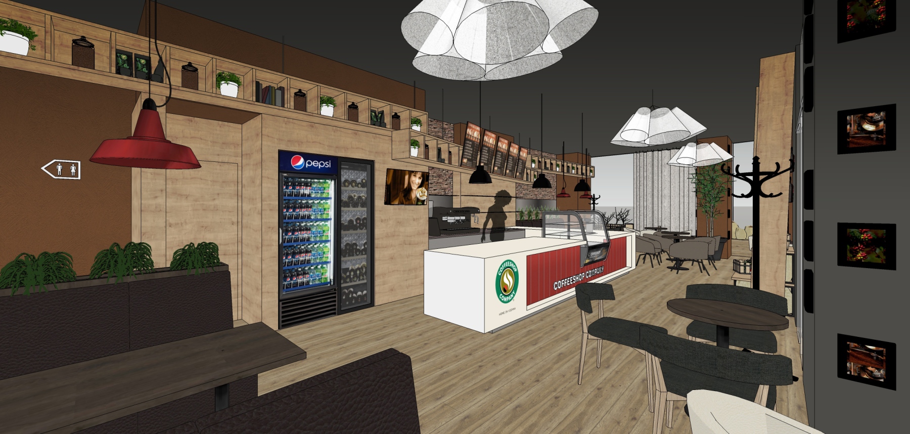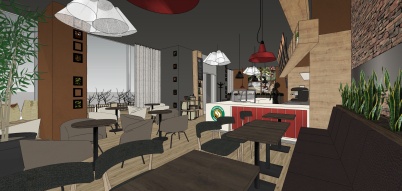 Na interiéri kaviarne v centre Pardubíc je použitých množstvo zaujímavých prvkov: kamenné a drevené obklady, pretierateľné tapety, fotopríbeh v rámikoch na masívnych stĺpoch, „domáce“ rekvizity v policiach nad pultom, debničky s prírodnými dekoráciami, závesy, atypické stropné lampy atď.
