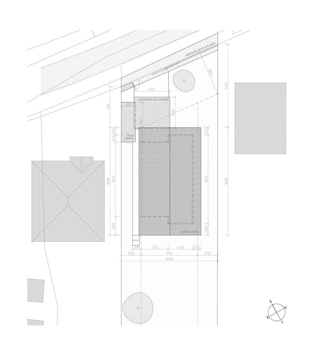 Rodinný dom je navrhovaný s prihliadnutím na racionálne a efektívne narábanie s plošnými a objemovými mierami, efektivitu prevádzky a racionálnosť architektonického stvárnenia. Osadenie na pozemku rešpektuje požiadavky podľa urbanistickej štúdie.