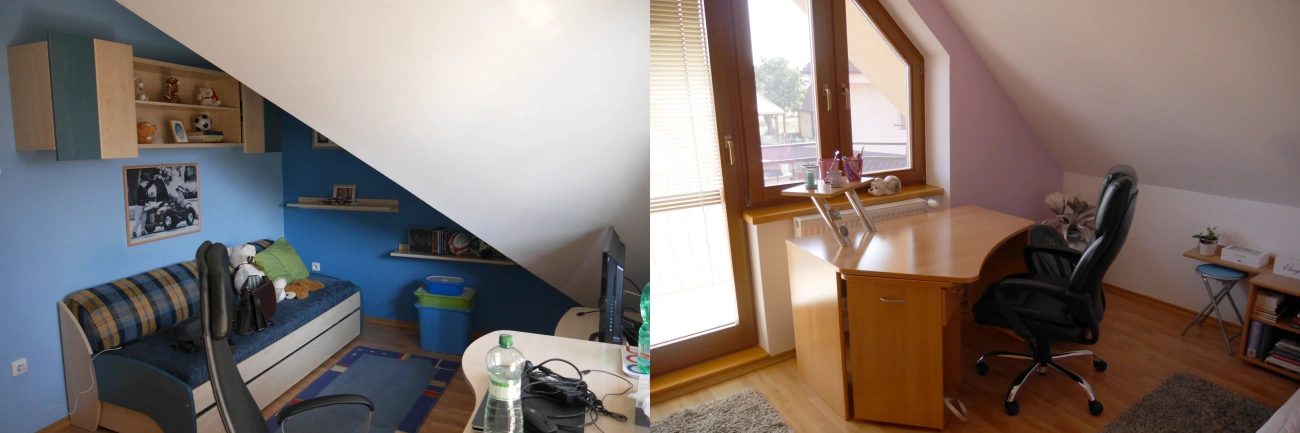 Zámerom nášho zákazníka bolo spojenie dvoch izieb do jednej viacúčelovej miestnosti. Miestnosť má slúžiť spánku, relaxu a práci súčasne.