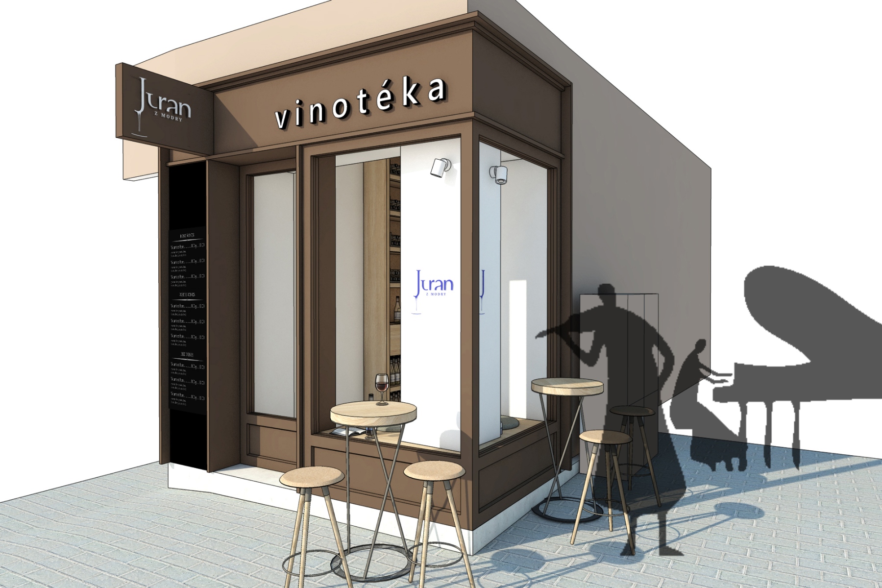 akcentom je pult, zvarený z ocele a pokrytý ťahokovom s logom